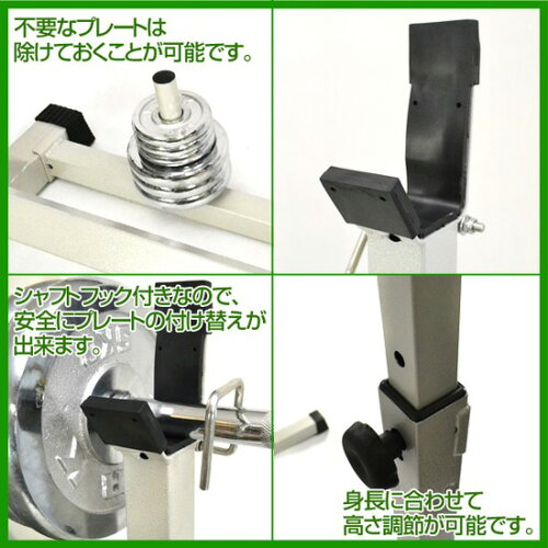 シャフトストッパーを装備していますので、安全にバーベルプレートの入れ替えができます。