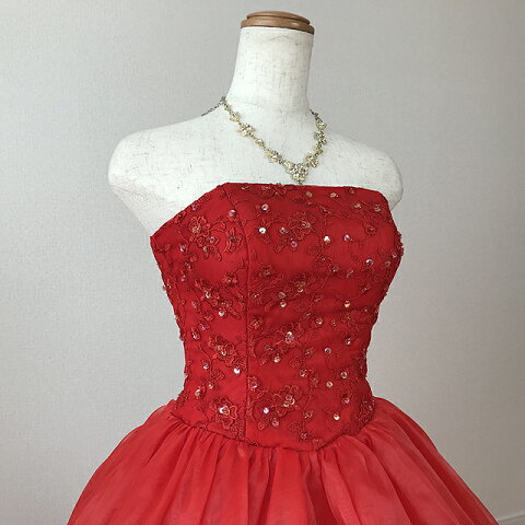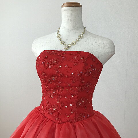 サイズの測り方はこちらから カラー レッド/真紅/赤 素材 ポリエステル パニエ着用 ○ (3段パニエを使用) 備考・取り扱い *サイズ表記について。